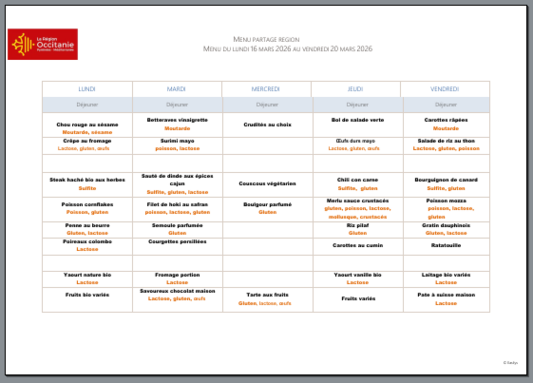 Menu de la semaine