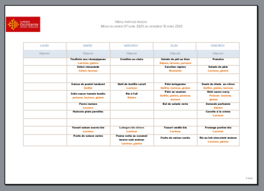 Menu de la semaine